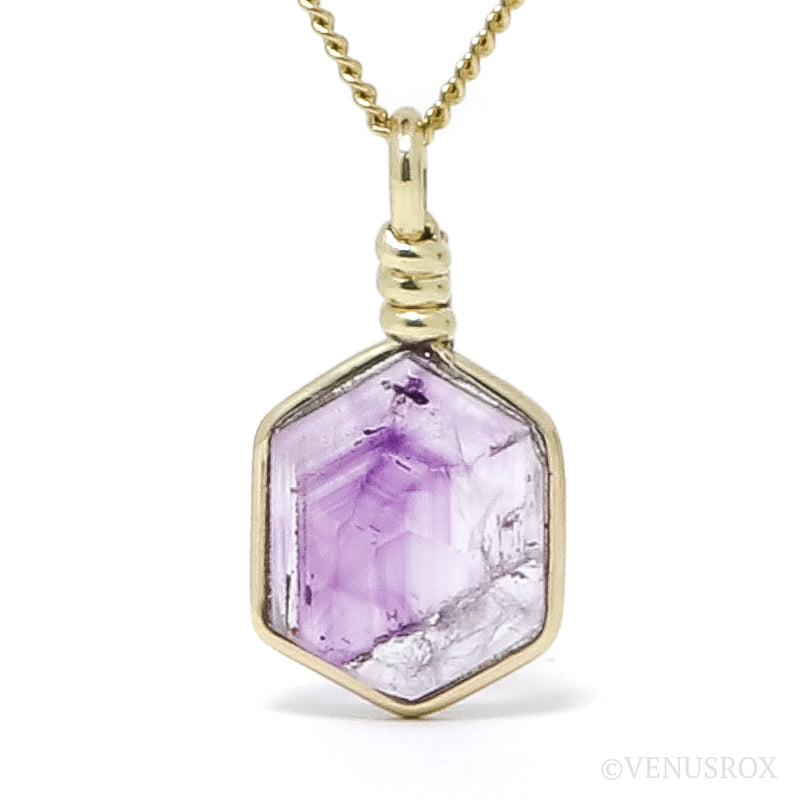 This Brandberg Amethyst Quartz Polished Slice is from the Brandberg Mountains, Namibia and is wrapped in 9Kt Yellow Gold